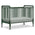 - Cribs have cut-outs on side panel posts to ensure crib bedding can be tied on securely.
